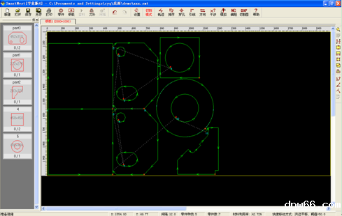 4、可以直接导入外部DXF/DWG格式的排料图进行切割路径优化和NC编程,并可将整张排料图自动拆解成单个零件,从而利用本软件对原排料图进行修改或重新套料。